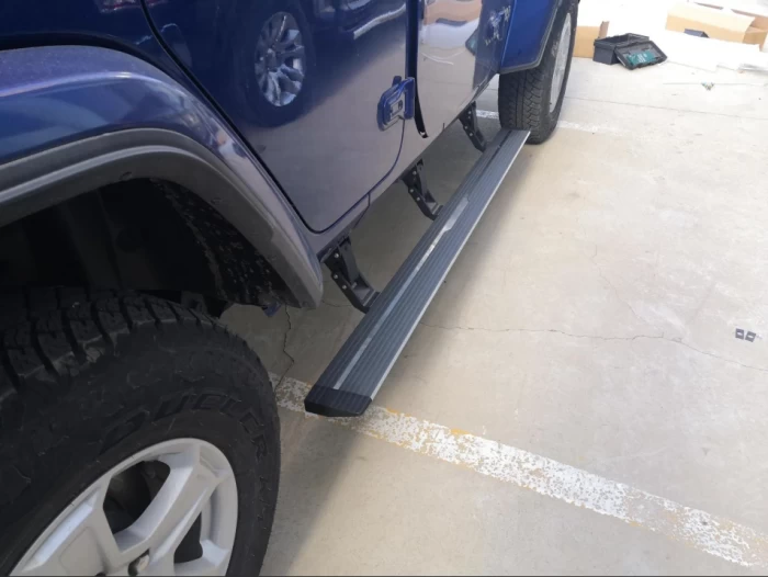Pisadera automática eléctrica accionada instantáneamente cuando abre la puerta y se retrae cuando las puertas se cierran mejorando así la distancia al suelo. Su diseño elegante y tiene un rendimiento en todo tipo de clima.